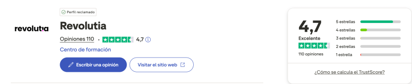 A día de hoy, los datos son públicos y difíciles de rebatir: puedes consultar las más de 110 opiniones de Revolutia con una puntuación de 4.7 sobre 5 en una plataforma independiente como Trustpilot
