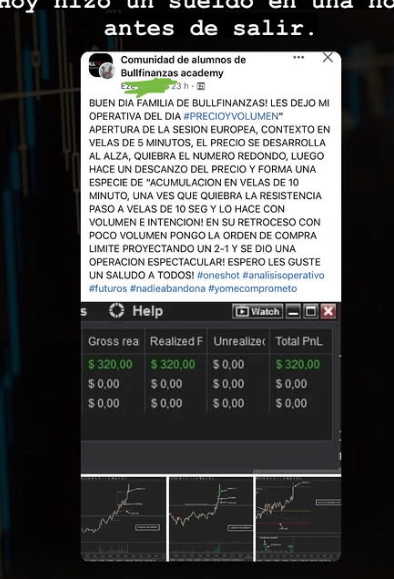 Los alumnos tienen acceso a una comunidad de alumnos activa donde pueden compartir operaciones, resolver dudas y mantenerse motivados. El soporte y comunidad de alumnos es destacado como uno de los puntos fuertes del programa.